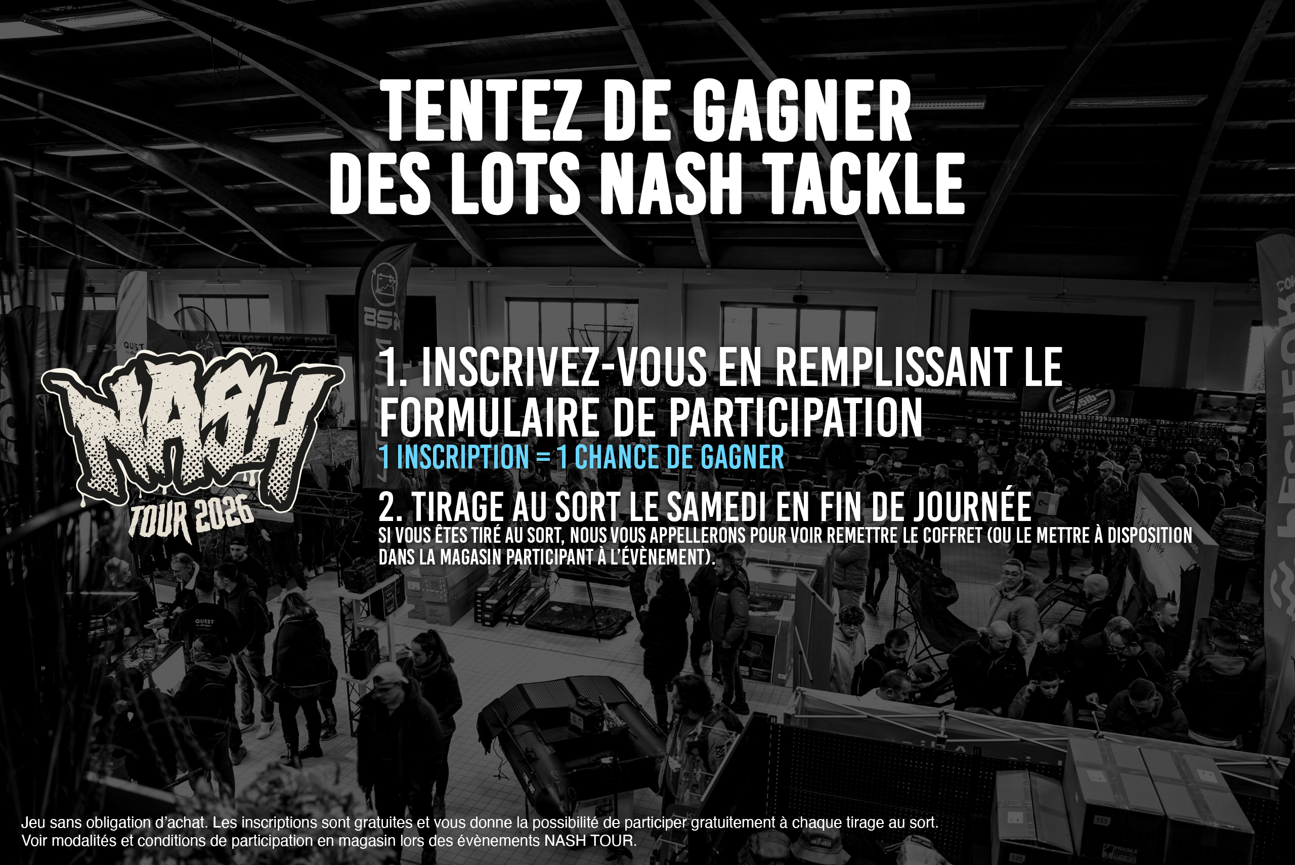 Nous vous faisons gagner des lots NASH TACKLE lors de chaque weekend des NASH TOUR. Pour participer, inscrivez-vous ci-dessous. 1 inscription = 1 chance de gagner le coffret de R4. Bonne chance à tous !